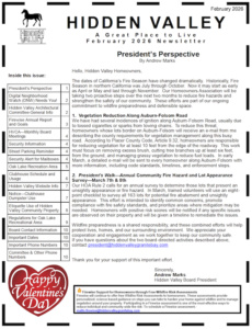Topics Include: – Presidents Perspective – DNW Needs You! – Committee-General Info – HVCAโMonthly Board Meetings – Security Information – Street Parking Reminder – Security Alert for Mailboxes – Oak Lake Recreation Area – Clubhouse Schedule and Usage – Hidden Valley Website Info ย Moreโฆ